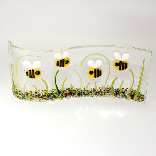 Each Bumble Bee has his/her own personality so therefore may look slightly different from the one in the picture. Although similar each one is never exactly identical as the glass is all hand cut and so this together with the random nature of the frit/stringer grass and different colours of frit flowers which have been added to the design makes each Candle Screen unique.